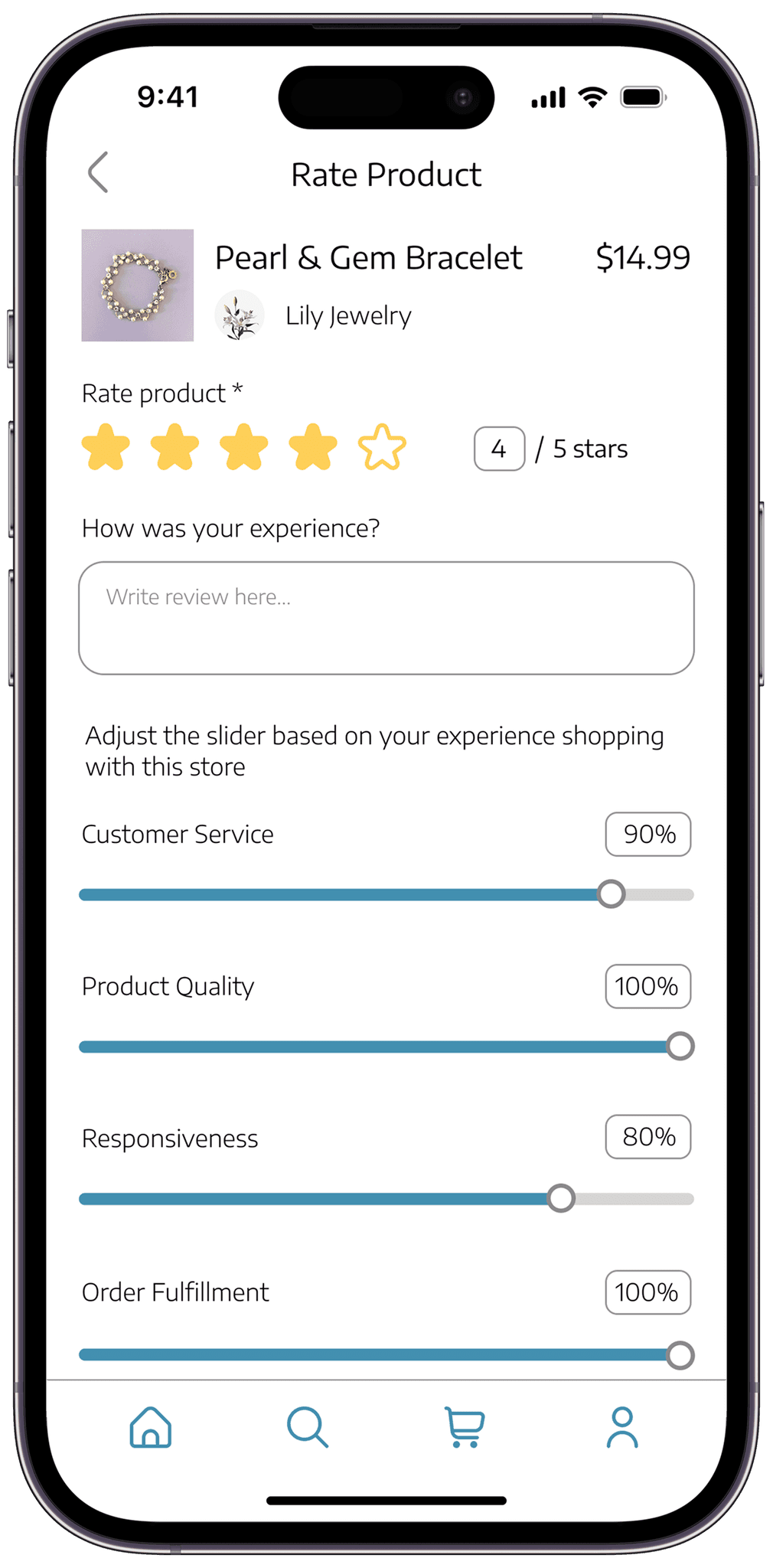 When rating a product, users are given multiple methods of inputting their ratings. They are given the option to tap to interact with the stars and sliders, or input a number into the text field.