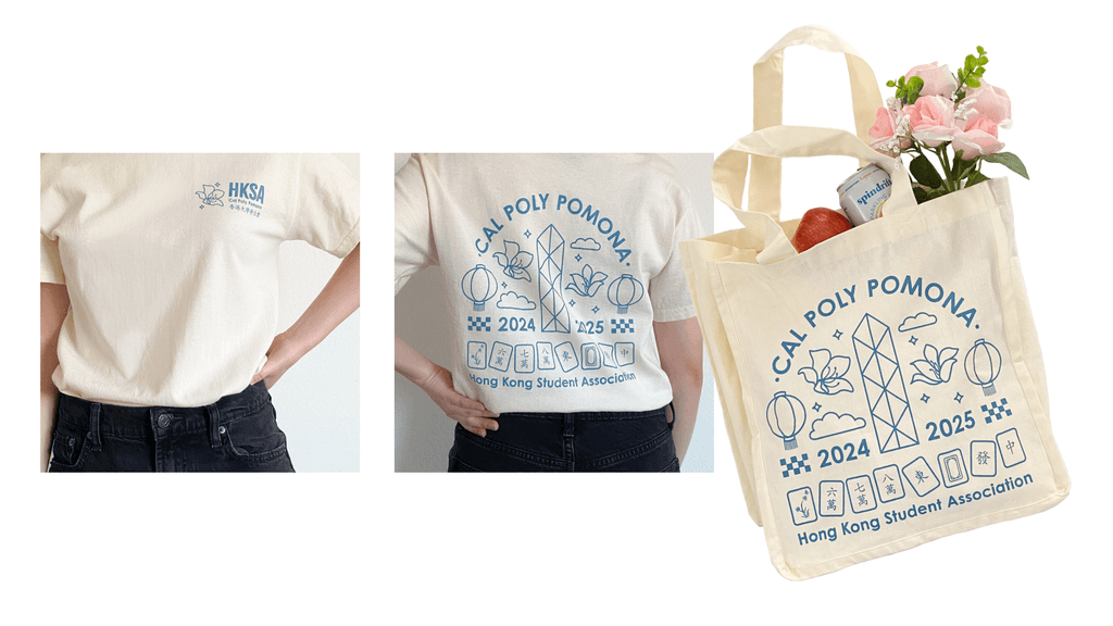 Designed a t-shirt and tote bag for the Hong Kong Student Association, a club at California State Polytechnic University, Pomona. Every school year, a new t-shirt design is selected.